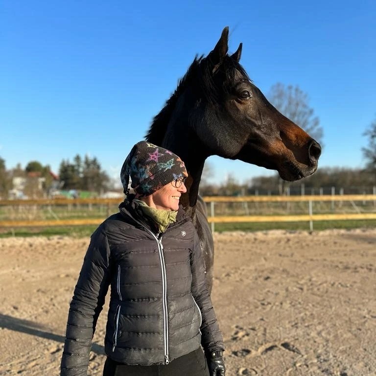Ich bin Baujahr `75 und schon immer mit dem Pferdevirus befallen. Meine Lehrer sind damals bald verzweifelt weil alle Hefte mit Pferdezeichnungen voll waren... Schon als kleines Mädchen habe ich ständigt den Kontakt zu den Pferden gesucht und bin geritten, wo sich die Gelegenheit bot. Mit 12 Jahren durfte ich dann endlich "richtigen Reitunterricht" nehmen. Im Lauf der Jahre fand ich dieses "Vorne ziehen und hinten hauen"aber immer schlimmer und ich suchte nach einer anderen Art des Reitens. Damals wurde das Westernreiten gerade populär und so buchte ich einfach mal Urlaub mit Western-Reitunterricht. Die Leichtigkeit dieser Reitweise war für mich faszinierend. Doch ganz angekommen war ich noch nicht.... Viele gute Trainer an meiner Seite haben mich so unglaublich viel gelehrt. Zum Beispiel bin ich viele Jahre bei Sabine Thomas geritten bei der ich nicht nur reiten sondern auch unterrichten gelernt habe. Jörg Bös hat mein Wissen um die Anatomie und die entsprechende Art zu reiten deutlich gefördert. Und nicht zu vergessen Renate M. Hess, die mich unermüdlich schult und immer wieder motiviert, daß ich auf dem richtigen Weg bin! (Danke Renate!!!) Ich versuche mich ständig weiter zu entwickeln und nehme regelmäßig Unterricht. Meine Art zu reiten und zu unterrichten richtet sich nicht nach einer Reitweise sondern orientiert an den Grundsätzen der funktionellen Anatomie. Der korrekte Muskelaufbau des Pferdes und seine innere und äußere Losgelassenheit und Freude an der Mitarbeit sind mir genau so wichtig wie der korrekte Sitz und die Einwirkung des Reiters, die er ohne das Verständnis "wie das Pferd eigentlich funktioniert" nicht erlangen kann. Ich sehe mich als "Anwalt für die Pferde". Meine tägliche Motivation ist es meine Reitschüler so umfassend und gut wie möglich auszubilden, damit deren Pferde so gut wie möglich geritten und behandelt werden.